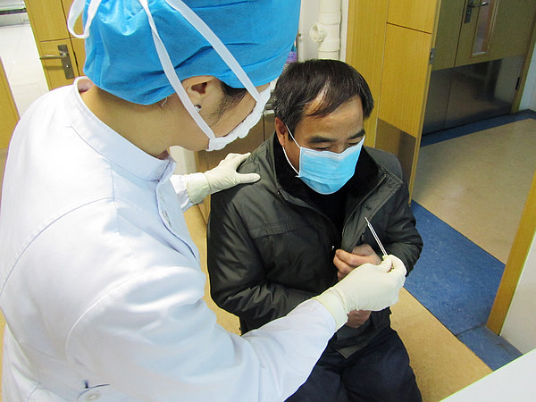 17日16时,我院发热门诊接诊一位青年男性“发热病人”,有活禽接触史。经过医护人员测体温,拍X光片,抽取血样等多项检测,确诊为疑似人感染H7N9禽流感病人,填报传染病登记卡,经医院防保人员上报区疾控中心。16时30分,转入隔离病房进行初步治疗。由区疾控中心安排下一步工作。