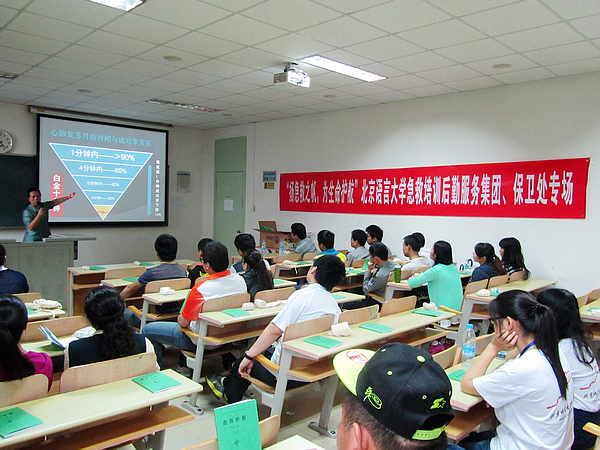 为了提高学校后勤、安保人员在各种突发事件中的急救处理能力,5月24日上午,校医院与校红十字会于教二楼406教室联合举办了“扬急救之帆,为生命护航”北京语言大学后勤服务集团、保卫处急救技能培训讲座。我院骨干医师张莉娜、陈瑞和、刘红为约30名后勤、安保人员进行了心肺复苏操作和创伤急救知识的培训。