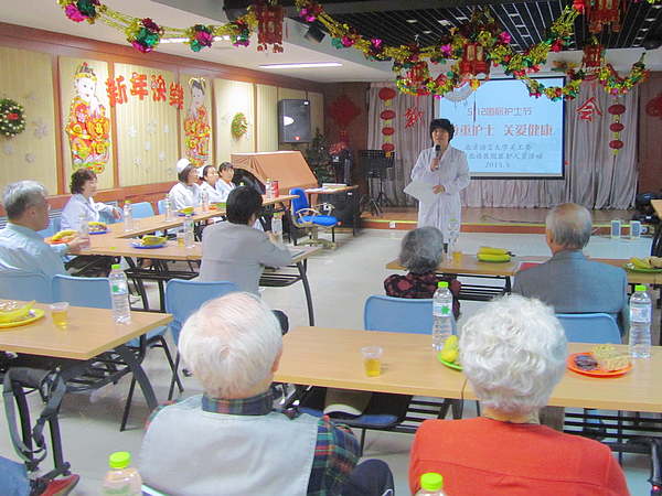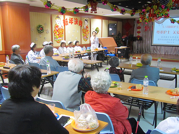 活动由医院郭青院长主持,首先党委副书记刘伟做致辞,讲了护士节的来历和医院里护士工作的重要性,并代表师生向校医院职工表达了谢意。关工委副主任王静老师代表离退休老同志讲话,并提出了家庭护理方面的需求建议。