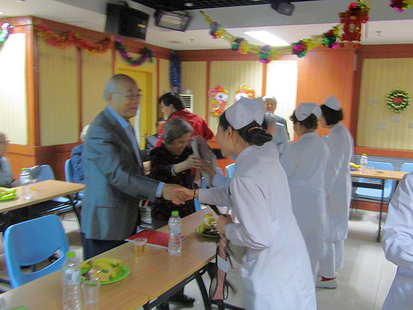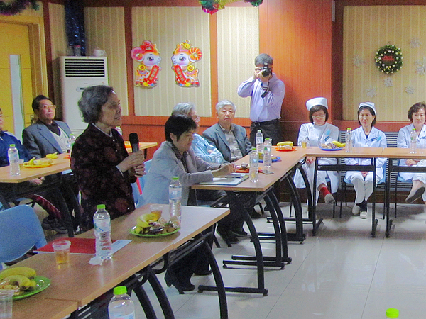 演出结束后是座谈阶段,首先老同志们向参会护士赠送了慰问礼品。护士们一一介绍了自己的从业经历、所在科室、擅长专业。老同志们则提出了多部门联合管理社区空巢老人养老问题等建议。