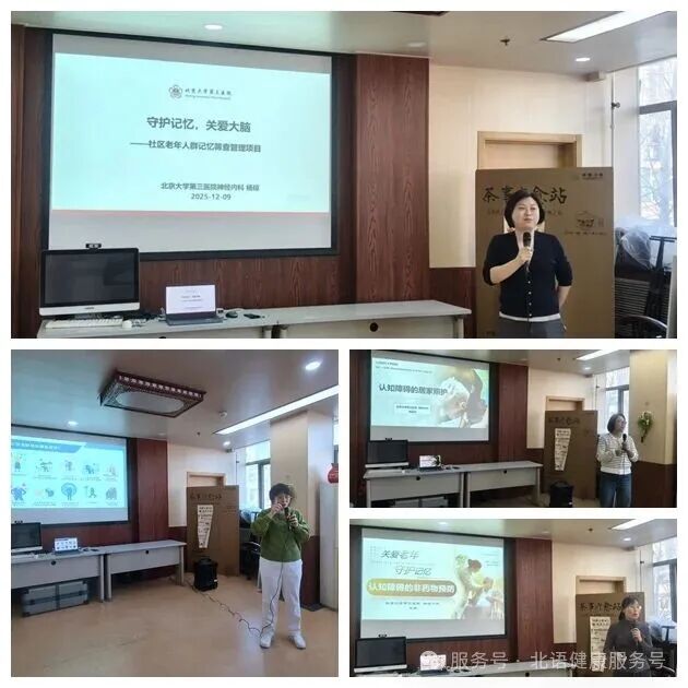 为提升社区居民对阿尔茨海默病的科学认知水平,推进老年期痴呆全病程服务体系建设,12月9日下午,校医院特邀北京大学第三医院神经内科专家团队,在医院健教室成功举办“阿尔茨海默病科普讲座”。此次活动的顺利开展,既是面向社区居民的健康宣教举措,也是海淀区老年期痴呆全病程服务协作网框架下,区级指导单位与基层成员单位深化协作、高效对接的具体实践,为后期有序推进校医院认知障碍服务工作奠定了坚实基础。