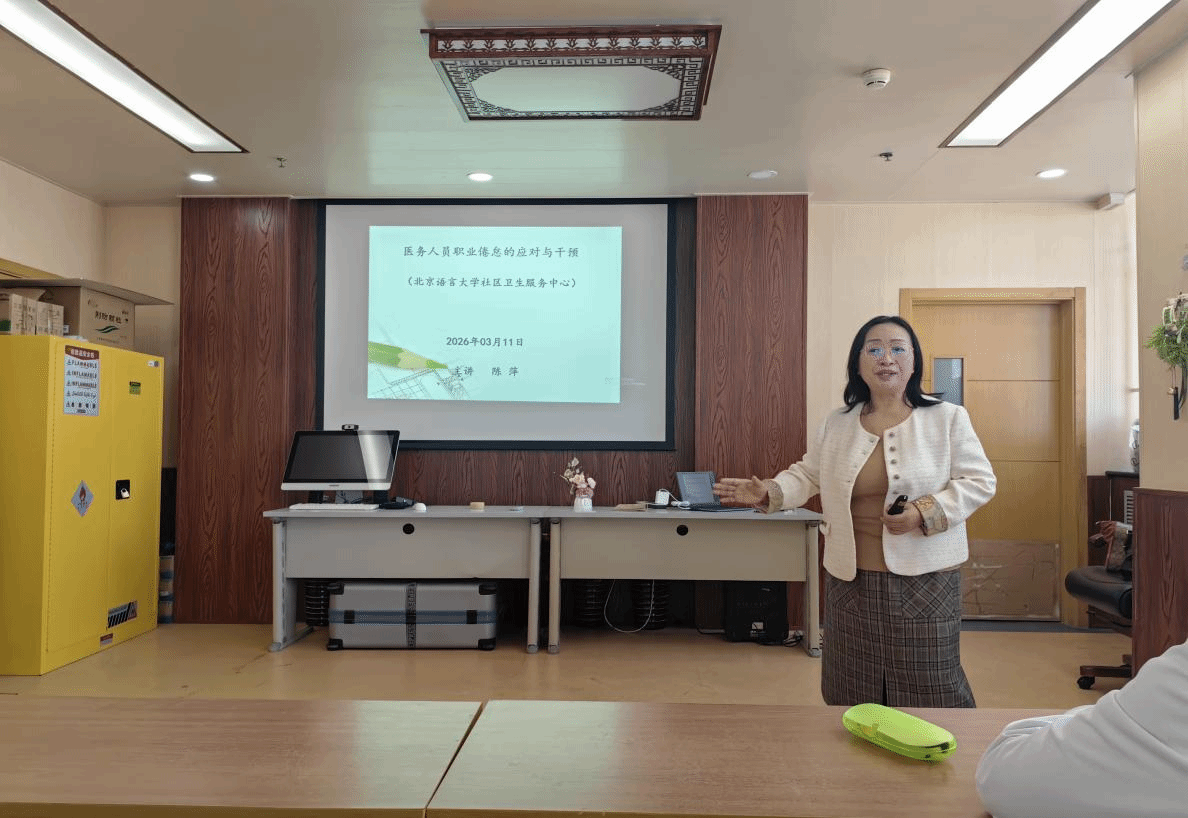 北京语言大学医院于2026年3月11日和3月25日中午,为全体医务人员举办了两场心理健康知识讲座。心理学讲师、国家心理咨询师陈萍老师带来《医务人员职业倦怠的应对与干预》主题分享;国家二级心理咨询师李琳琳老师则围绕《心理学视角下医患沟通的技巧与实践》展开讲解。
